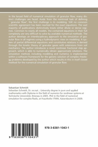 In the broad field of numerical simulation of granular flow, many distinct challenges are faced. Aside from the nontrivial task of defining ``granular flow'', the first challenge is its modeling. Still no common scientific agreement has been reached for the exact equations. The vast majority of publications distinctively treats either dilute or dense regimes. Common to nearly all models, the contained equations in their full complexity are very difficult to solve by available numerical methods. The author develops an interdisciplinary approach to the simulation of granular flow in all regimes using a hydrodynamic view on modeling. A system of partial differential equations and constitutive relations is derived through the kinetic theory of granular gases with extensions from soil mechanics. The author introduces a novel nonlinear fractional step approach, which is able to numerically obtain approximate solutions. The simulation method, including modeling and numerics is implemented within a software framework for the generic solution of complex rheology problems developed by the author which results in this in-itself closed method for the numerical simulation of granular flow.