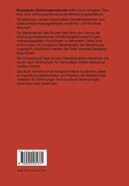 Numerische Verfahren mit geometrieangepaßten Koordinaten ermöglichen die Berechnung von Strömungen mit komplexen Berandungen. Hier wird ein Überblick über die Methoden gegeben, die verschiedenen Vorgehensweisen werden beschrieben, Vor- und Nachteile skizziert und gegeneinander abgewogen. Umfassend wird auf die inkompressiblen Verfahren eingegangen, mit denen auch Strömungen für kleine Mach-Zahlen berechnet werden können. Ausführlich werden die Finite-Volumen-Verfahren behandelt.