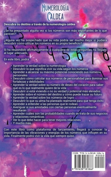 Descubra su destino a través de la numerología caldea ¿Se ha preguntado alguna vez si los números son más importantes de lo que parecen? ¿Alguna vez ha sospechado que su vida podría ser mucho mejor si pudiera descubrir cómo utilizar los números en su propio beneficio? Si ha respondido afirmativamente a cualquiera de estas preguntas, ha llegado al lugar adecuado. En este libro, podrá:Aprender la verdad sobre la numerología Descubrir lo que significa vivir su vida según los números Aprender a alcanzar su máximo potencial conociendo sus números personales Descubrir cómo calcular sus números de personalidad para dominar sus fortalezas y debilidades Aprender la verdad sobre su número de deseo del corazón para saber qué es lo que realmente quiere de la vida Descubrir si está viviendo o no su verdad y potencial más elevados Aprender sobre el número del destino y cómo puede trazar su futuro Aprender la verdad sobre los números de logro Descubrir lo que su alma ha planeado realmente para que tenga éxito Aprender a entender a las personas que le rodean Averiguar si sus amistades con ciertas personas eventualmente resultarán Aprender cuáles son las probabilidades cuando se trata de sus negocios y relaciones románticas Ver lo que debe hacer para tener mejores relaciones Y mucho más. Con este libro como plataforma de lanzamiento, llegará a conocer la importancia de las vibraciones y energías de los números que influyen en su vida. Finalmente podrá vivir la vida que siempre quiso. Haga clic en el botón "añadir al carrito" ahora y descubra la magia de los números.