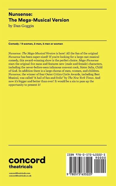 Musical Characters: 1 male, 9 female, chorus, and extras Unit Set "Nunsense: The Mega-Musical Version" is here! All the fun of the original "Nunsense" has been super-sized! If you're looking for a Large Cast Musical Comedy this award-winning show is the perfect choice. "Mega-Nunsense" starring the original five nuns features five new (male and female)characters including the never- before-seen infamous convent cook, Sister Julia, Child of God. In additio