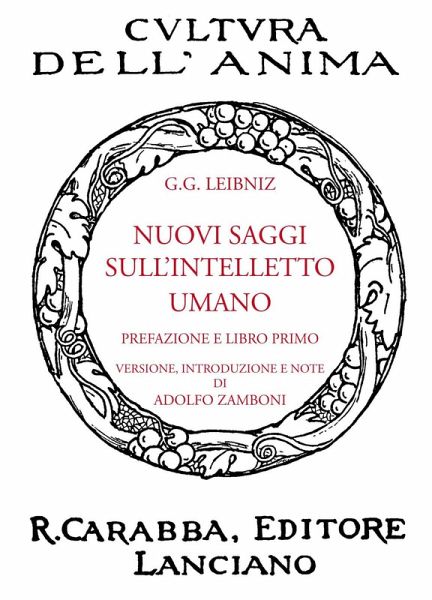 La collana "Cultura dell'anima" fu ideata da Giovanni Papini e pubblicata da Rocco Carabba dal 1909 al 1938, per un totale di 163 titoli. Dal 2008 la casa editrice Carabba ha deciso di ripubblicare, in ristampa anastatica, nella sua interezza la collana "Cultura dell'anima" con l'uscita di circa trenta volumi annuali. Prefazione e libro primo. Versione, introduzione e note di Adolfo Zamboni. Edizione originale Carabba 1930. I "Nuovi saggi" non furono pubblicati dal Leibniz, perché nel 1704 venne a morte il Locke, col quale aveva polemizzato nell'opera; essi videro la luce soltanto nel 1765 per cura del Raspe. Das Urheberrecht an bibliographischen und produktbeschreibenden Daten und an den bereitgestellten Bildern liegt bei Informazioni Editoriali, I.E. S.r.l., oder beim Herausgeber oder demjenigen, der die Genehmigung erteilt hat. Alle Rechte vorbehalten.