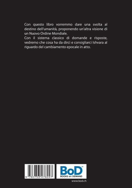 Con questo libro vorremmo dare una svolta al destino dell'umanità, proponendo un'altra visione di un Nuovo Ordine Mondiale. Con il sistema classico di domande e risposte, vedremo che cosa ha da dirci e consigliarci Ishvara al riguardo del cambiamento epocale in atto.