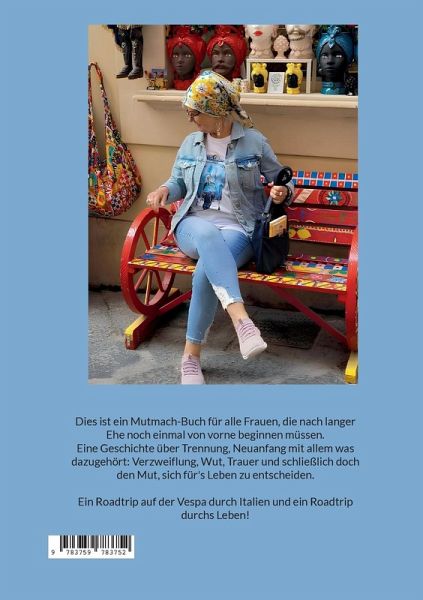 Dies ist ein Mutmach-Buch für alle Frauen, die nach langer Ehe noch einmal von vorne beginnen müssen. Eine Geschichte über Trennung, Neuanfang mit allem was dazugehört: Verzweiflung, Wut, Trauer und schließlich doch den Mut, sich für's Leben zu entscheiden. Ein Roadtrip auf der Vespa durch Italien und ein Roadtrip durch's Leben!