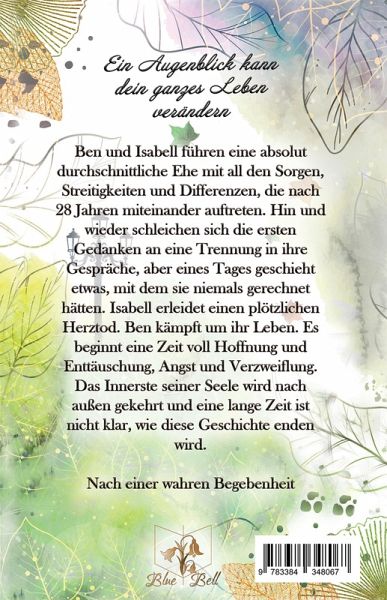 Ben und Isabell führen eine absolut durchschnittliche Ehe mit all den Sorgen, Streitigkeiten und Differenzen, die nach 28 Jahren miteinander auftreten. Hin und wieder schleichen sich die ersten Gedanken an eine Trennung in ihre Gespräche, aber eines Tages geschieht etwas, mit dem sie niemals gerechnet hätten. Isabell erleidet einen plötzlichen Herztod. Ben kämpft um ihr Leben. Es beginnt eine Zeit voll Hoffnung und Enttäuschung, Angst und Verzweiflung. Das Innerste seiner Seele wird nach außen gekehrt und eine lange Zeit ist nicht klar, wie diese Geschichte enden wird.Teil 1 von 2Nach einer wahren Begebenheit.