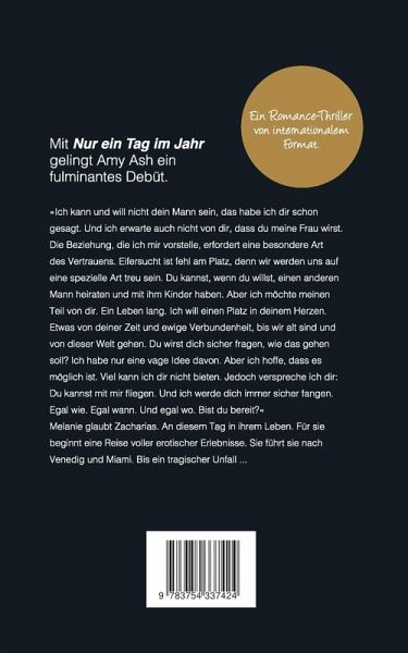 Kein rosaroter Liebesroman. Ein unglaubliches Abenteuer. »Ich kann und will nicht dein Mann sein, das habe ich dir schon gesagt. Und ich erwarte auch nicht von dir, dass du meine Frau wirst. Die Beziehung, die ich mir vorstelle, erfordert eine besondere Art des Vertrauens. Eifersucht ist fehl am Platz, denn wir werden uns auf eine spezielle Art treu sein. Du kannst, wenn du willst, einen anderen Mann heiraten und mit ihm Kinder haben. Aber ich möchte meinen Teil von dir. Ein Leben lang. Ich will einen Platz in deinem Herzen. Etwas von deiner Zeit und ewige Verbundenheit, bis wir alt sind und von dieser Welt gehen. Du wirst dich sicher fragen, wie das gehen soll? Ich habe nur eine vage Idee davon. Aber ich hoffe, dass es möglich ist. Viel kann ich dir nicht bieten. Jedoch verspreche ich dir: Du kannst mit mir fliegen. Und ich werde dich immer sicher fangen. Egal wie. Egal wann. Und egal wo. Bist du bereit?«Melanie glaubt Zacharias. An diesem Tag in ihrem Leben. Für sie beginnt eine Reise voller erotischer Erlebnisse. Sie führt sie nach Venedig und Miami. Bis ein tragischer Unfall ...