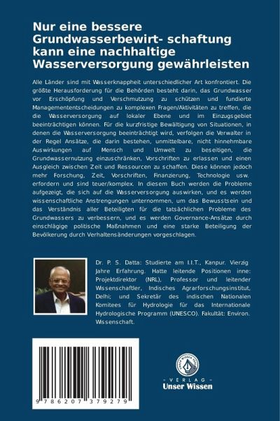 Alle Länder sind mit Wasserknappheit unterschiedlicher Art konfrontiert. Die größte Herausforderung für die Behörden besteht darin, das Grundwasser vor Erschöpfung und Verschmutzung zu schützen und fundierte Managemententscheidungen zu komplexen Fragen/Aktivitäten zu treffen, die die Wasserversorgung auf lokaler Ebene und im Einzugsgebiet beeinträchtigen können. Für die kurzfristige Bewältigung von Situationen, in denen die Wasserversorgung beeinträchtigt wird, verfolgen die Verwalter in der Regel Ansätze, die darin bestehen, unmittelbare, nicht hinnehmbare Auswirkungen auf Mensch und Umwelt zu beseitigen, die Grundwassernutzung einzuschränken, Vorschriften zu erlassen und einen Ausgleich zwischen Zeit und Ressourcen zu schaffen. Diese können jedoch mehr Forschung, Zeit, Vorschriften, Finanzierung, Technologie usw. erfordern und sind teuer/komplex. In diesem Buch werden die Probleme aufgezeigt, die sich auf die Wasserversorgung auswirken, und es werden wissenschaftliche Anstrengungen unternommen, um das Bewusstsein und das Verständnis aller Beteiligten für die tatsächlichen Probleme des Grundwassers zu verbessern, und es werden Governance-Ansätze durch einschlägige politische Maßnahmen und eine starke Beteiligung der Bevölkerung durch Verhaltensänderungen vorgeschlagen.