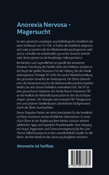 Anorexia Nervosa - Magersucht - ist eine genetisch veranlagte, psychobiologische Krankheit mit einer Sterberate von 10-15%. Je früher die Krankheit diagnostiziert wird, je rascher mit der Wiederernährung begonnen wird und je schneller ein individuelles gesundes Gewicht erreicht wird, desto größer ist die langfristige Heilungschance.Bei Kindern und Jugendlichen ist gemäß der modernen Anorexie-Forschung die Familie nicht das Problem, sondern in der Regel die größte Ressource für die Heilung. Bei der Familienintegrierten Therapie FiT steht die rasche Wiederherstellung des gesunden Gewichts im Vordergrund. Die Eltern übernehmen die Verantwortung für die Wiederernährung ihres kranken Kindes, bis sich dessen Verhalten normalisiert hat. Die FiT ist eine gewachsene Adaption des Family Based Treatments FBT an die Realität der Behandlungssituation in den deutschsprachigen Ländern. Die Therapie wird mangels FBT-Therapeut:innen und anderen familienbasiert arbeitenden Fachpersonen durch die Eltern durchgeführtDieser Ratgeber liefert ein tiefes Verständnis für die Krankheit auf Basis moderner wissenschaftlicher Erkenntnisse. Er unterstützt Eltern in der Begleitung ihrer Kinder zuhause anhand zahlreicher Tipps und erprobter Praxisbeispiele. Vom Umgang mit Angst, Aggression und Essensverweigerung bis hin zum Thema Selbstfürsorge ist er eine unentbehrliche Quelle für alle Eltern, die ihre Kinder in die Genesung begleiten möchten. Anorexie ist heilbar.