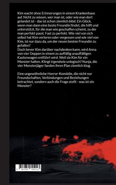Kim wacht ohne Erinnerungen in einem Krankenhaus auf. Nicht zu wissen, wer man ist, oder wie man dort gelandet ist - das ist schon ziemlich blöd. Ein Glück, wenn man dann eine beste Freundin findet, die hilft und unterstützt, für die man wie geschaffen scheint, zu der man perfekt passt. Fast zu perfekt. Wie viel von sich selbst hat Kim verloren oder vergessen und wie viel von Kim, ist nur dazu da, um der neuen besten Freundin zu gefallen? Doch bevor Kim darüber nachdenken kann, wird Anna von vier Deppen in einem zu auffällig unauffälligen Kastenwagen entführt wird. Weil sie Kim für ein Monster halten. Klingt irgendwie unlogisch? Nunja, die vier Monsterjäger fanden ihren Plan ziemlich klug. Eine ungewöhnliche Horror-Komödie, die nicht nur Freundschaften, Verbindungen und Beziehungen betrachtet, sondern auch die Frage stellt - was ist ein Monster?