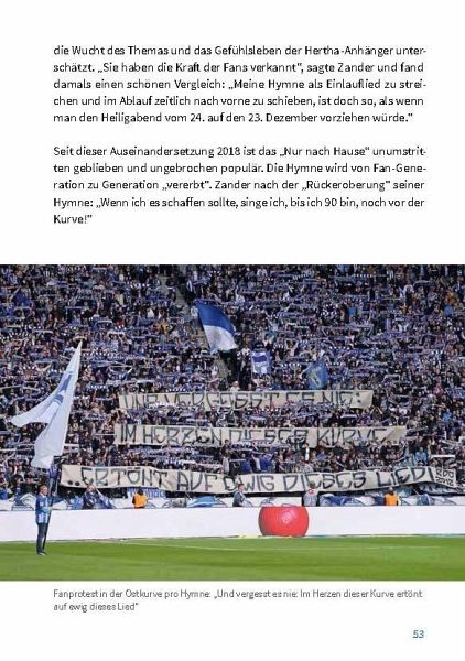 Im Jahr 1993 begeisterten die Amateure von Hertha BSC, die sogenannten Bubis, ganz Berlin mit ihrem sensationellen Siegeszug im DFB-Pokal. In der Halbzeitpause des Halbfinales gegen den Chemnitzer FC am 31. März 1993 sang Entertainer Frank Zander, eines der letzten Berliner Originale, zum ersten Mal sein "Nur nach Hause geh'n wir nicht" nach der Melodie von "I'm sailing" live im vollen Olympiastadion. Es war die Geburtsstunde der künftigen Vereinshymne. Michael Jahn hat alles Wissenswerte, viel Kurioses und auch Skurriles rund um die Kult-Hymne zusammengetragen. Wie ist sie eigentlich entstanden? Wer verdient an dem Song? Wie haben die Fans alle Versuche von "oben", die Hymne abzusetzen, erfolgreich vereitelt? Auch zahlreiche Prominente aus Sport, Politik und Gesellschaft schildern ihre emotionalen Erlebnisse mit der eingängigen Hymne. Mit zahlreichen Fotos auch aus dem privaten Album von Frank Zander und seinem Sohn Marcus.