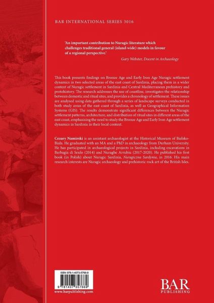 This book presents findings on Bronze Age and Early Iron Age Nuragic settlement dynamics in two selected areas of the east coast of Sardinia, placing them in a wider context of Nuragic settlement in Sardinia and Central Mediterranean prehistory and protohistory. The research addresses the use of coastline, investigates the relationship between domestic and ritual sites, and provides a chronology of settlement. These issues are analysed using data gathered through a series of landscape surveys conducted in both study areas of the east coast of Sardinia, as well as Geographical Information Systems (GIS). The results demonstrate significant differences between the Nuragic settlement patterns, architecture, and distribution of ritual sites in different areas of the east coast, emphasising the need to study the Bronze Age and Early Iron Age settlement dynamics in Sardinia in their local context.