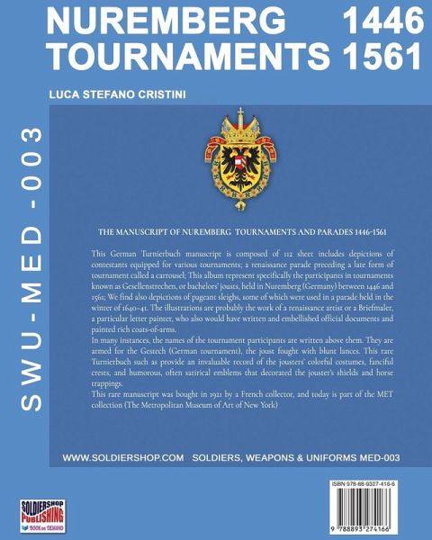 This German Turnierbuch manuscript is composed of 112 sheet includes depictions of contestants equipped for various tournaments; a renaissance parade preceding a late form of tournament called a carrousel; This album represent specifically the participants in tournaments known as Gesellenstrechen, or bachelors' jousts, held in Nuremberg (Germany) between 1446 and 1561; We find also depictions of pageant sleighs, some of which were used in a parade held in the winter of 1640-41. The illustrations are probably the work of a renaissance artist or a Briefmaler, a particular letter painter, who also would have written and embellished official documents and painted rich coats-of-arms. In many instances, the names of the tournament participants are written above them. They are armed for the Gestech (German tournament), the joust fought with blunt lances. This rare Turnierbuch such as provide an invaluable record of the jousters' colorful costumes, fanciful crests, and humorous, often satirical emblems that decorated the jouster's shields and horse trappings. This rare manuscript was bought in 1921 by a French collector, and today is part of the MET collection (The Metropolitan Museum of Art of New York). In appendix we have insert 16 wonderful color plates from the German reprint book of 1918: Hans Burgkmair des Jungeren - Turnierbuch vom 1529.
