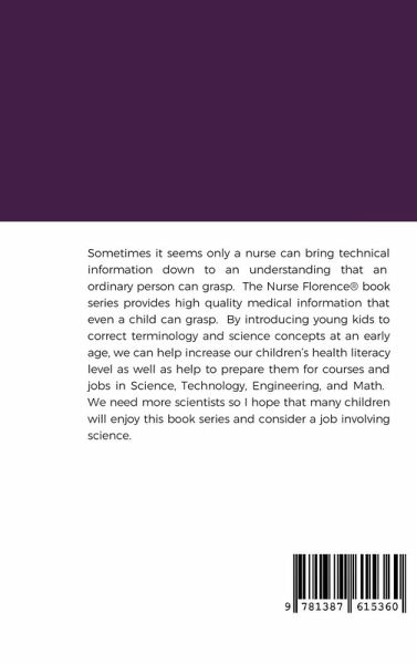 Sometimes it seems only a nurse can bring technical information down to an understanding that an ordinary person can grasp. The Nurse Florence® book series provides high quality medical information that even a child can grasp. By introducing young kids to correct terminology and science concepts at an early age, we can help increase our children's health literacy level as well as help to prepare them for courses and jobs in Science, Technology, Engineering, and Math. We need more scientists so I hope that many children will enjoy this book series and consider a job involving science.