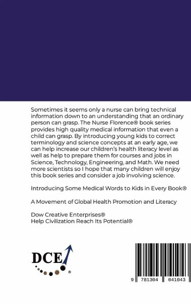 Sometimes it seems only a nurse can bring technical information down to an understanding that an ordinary person can grasp. The Nurse Florence® book series provides high quality medical information that even a child can grasp. By introducing young kids to correct terminology and science concepts at an early age, we can help increase our children's health literacy level as well as help to prepare them for courses and jobs in Science, Technology, Engineering, and Math. We need more scientists so I hope that many children will enjoy this book series and consider a job involving science. Introducing Some Medical Words to Kids in Every Book® A Movement of Global Health Promotion and Literacy Dow Creative Enterprises® Help Civilization Reach Its Potential®