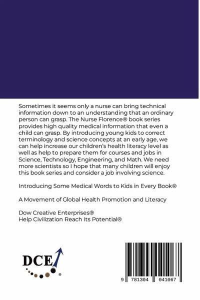 Sometimes it seems only a nurse can bring technical information down to an understanding that an ordinary person can grasp. The Nurse Florence® book series provides high quality medical information that even a child can grasp. By introducing young kids to correct terminology and science concepts at an early age, we can help increase our children's health literacy level as well as help to prepare them for courses and jobs in Science, Technology, Engineering, and Math. We need more scientists so I hope that many children will enjoy this book series and consider a job involving science. Introducing Some Medical Words to Kids in Every Book® A Movement of Global Health Promotion and Literacy Dow Creative Enterprises® Help Civilization Reach Its Potential®