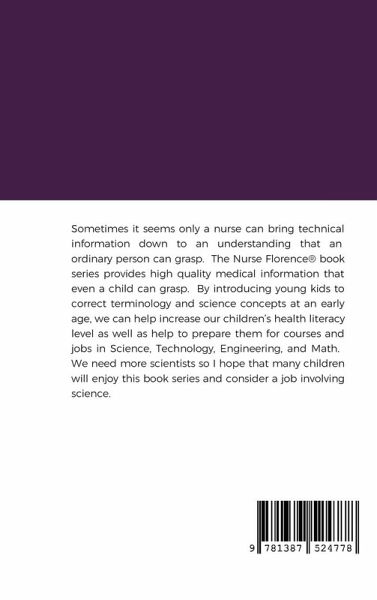 Sometimes it seems only a nurse can bring technical information down to an understanding that an ordinary person can grasp. The Nurse Florence® book series provides high quality medical information that even a child can grasp. By introducing young kids to correct terminology and science concepts at an early age, we can help increase our children's health literacy level as well as help to prepare them for courses and jobs in Science, Technology, Engineering, and Math. We need more scientists so I hope that many children will enjoy this book series and consider a job involving science.