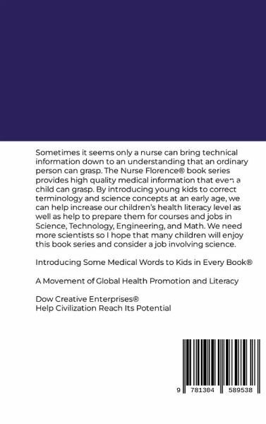 Sometimes it seems only a nurse can bring technical information down to an understanding that an ordinary person can grasp. The Nurse Florence® book series provides high quality medical information that even a child can grasp. By introducing young kids to correct terminology and science concepts at an early age, we can help increase our children's health literacy level as well as help to prepare them for courses and jobs in Science, Technology, Engineering, and Math. We need more scientists so I hope that many children will enjoy this book series and consider a job involving science. Introducing Some Medical Words to Kids in Every Book® A Movement of Global Health Promotion and Literacy Dow Creative Enterprises® Help Civilization Reach Its Potential