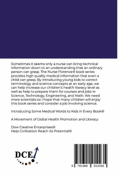 Sometimes it seems only a nurse can bring technical information down to an understanding that an ordinary person can grasp. The Nurse Florence(R) book series provides high quality medical information that even a child can grasp. By introducing young kids to correct terminology and science concepts at an early age, we can help increase our children's health literacy level as well as help to prepare them for courses and jobs in Science, Technology, Engineering, and Math. We need more scientists so I hope that many children will enjoy this book series and consider a job involving science. Introducing Some Medical Words to Kids in Every Book(R) A Movement of Global Health Promotion and Literacy Dow Creative Enterprises(R) Help Civilization Reach Its Potential(R)