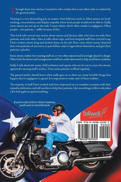 Through these true stories, I wanted to tell a reality that is not often told, or realized by the general public. Nursing is a very demanding job, no matter what field you work in. Most nurses are hard-working, conscientious, and display empathy when most people would not be able to. Sadly, some nurses are not up to the task, I must admit, which often results in negligence. Often people - our patients - suffer because of this. This book tells several true stories about nurses and doctors alike who have sex with their patients, and each other. Also, it talks about rape, and how hospital staff have covered it up. I have written about drug and alcohol abuse on the job. Even cases where nurses deprived their own patients of narcotics, or pain killers, only to ingest them themselves, and give their patients a placebo. Some stories outline how nursing staff are so very often injured and knowingly placed in danger. Often both the doctor and management could have easily intervened to help avoid these incidents. Sadly, I talk about the many child molesters and rapists who are let out to roam the streets, against the nursing staff's wishes. These same patients reoffend regularly. The general public should know what really goes on as there are many horrible things that happen due to negligence or greed. It is important to make note of these realities. The majority of staff I have worked with have impressed me on countless occasions with their empathy, dedication, and self-sacrifice to help their patients. Like most things in life, it only takes a few bad apples to spoil everything. "If you're a fan of ER or Grey's Anatomy, you'll want to read this book."