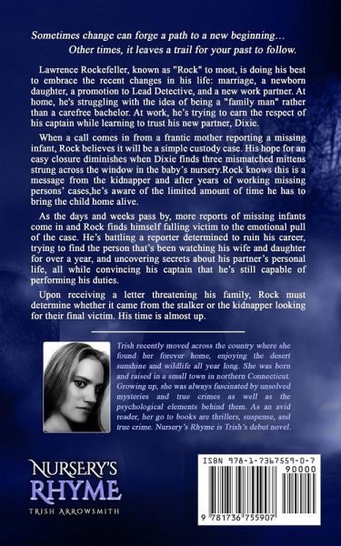 Sometimes change can forge a path to a new beginning... Other times, it leaves a trail for your past to follow. Lawrence Rockefeller, known as "Rock" to most, is doing his best to embrace the recent changes in his life: marriage, a newborn daughter, a promotion to Lead Detective, and a new work partner. At home, he's struggling with the idea of being a "family man" rather than a carefree bachelor. At work, he's trying to earn the respect of his captain while learning to trust his new partner, Dixie. When a call comes in from a frantic mother reporting a missing infant, Rock believes it will be a simple custody case. His hope for an easy closure diminishes when Dixie finds three mismatched mittens strung across the window in the baby's nursery. Rock knows this is a message from the kidnapper and after years of working missing persons' cases, he's aware of the limited amount of time he has to bring the child home alive.As the days and weeks pass by, more reports of missing infants come in and Rock finds himself falling victim to the emotional pull of the case. He's battling a reporter determined to ruin his career, trying to find the person that's been watching his wife and daughter for over a year, and uncovering secrets about his partner's personal life, all while convincing his captain that he's still capable of performing his duties.Upon receiving a letter threatening his family, Rock must determine whether it came from the stalker or the kidnapper looking for their final victim. His time is almost up.