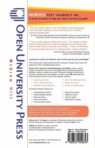 "This book provides extensive coverage of each of the human body systems. It relates pathophysiology to the clinical environment, relevant investigations and treatments for disease. A useful text for both newly qualified and student nurses." Amy Hutchinson, Student Nurse, University of Ulster, UK "From a nursing student perspective this book is excellent... It is laid out very well allowing the reader to learn individual body systems in manageable chunks. The chapters are well introduced and include pointers to useful learning resources and background reading... and the answers are concise yet contain enough detail to ensure readability and retention of detail. Every nursing student should have this book." Conor Hamilton, Student, Queen's University Belfast "As a student nurse I am always looking for ways to enhance my learning and this book provides an excellent resource for this purpose. Working on the wards and desperately trying to recall all the physiology knowledge you are taught at university is not always easy... Nurses! Test yourself in Pathophysiology has been invaluable to my being able to remember the information. These bite-size chapters will be extremely useful if you need to revise pathophysiology for an exam, or when preparing for a particular placement. This book will make an excellent investment for a student at any stage in their course." Sarah Galloway, Student Nurse, University of Wolverhampton, UK "This book contains a substantial bank of questions which will prove very useful to any enthusiastic student wishing to actively learn and revise pathophysiology. The simple structure and expanded answers provide effective feedback, adding value and support for learning. The book will be a useful partner to support many of the pathophysiology textbooks currently available. It should be included on recommended reading lists for students. It will also find a useful place in support of teaching and professional development." Jim Jolly, Head of Academic Unit for Long Term Conditions, School of Healthcare, University of Leeds, UK "This book will be a helpful tool for all student nurses (regardless of branch), newly qualified nurses and nurses returning to practice. The language used in the book is easy to understand and I found the layout to be very user friendly and ideal for revising. I would recommend this book to all my colleagues." Colette Seddon, Student Nurse, University of Bedfordshire, UK Looking for a quick and effective way to revise and test your knowledge? This handy book is the essential self-test resource to help nurses revise and prepare for their pathophysiology exams. The book covers a broad range of conditions common to nursing practice including pneumonia, diabetes, asthma, eczema and more. The book includes over 300 questions and 70 glossary terms in total, and each chapter has: - Multiple choice questions - True or false questions - Labelling exercises >The book includes chapters on: - Integumentary system - Musculoskeletal system - Nervous system - Endocrine system - Cardiovascular system - Respiratory system - Digestive system - Urinary system >Written by lecturers at one of the UK's top nursing schools, this test book is sure to help you improve your results - and tackle your exams with confidence!