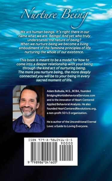 We are human beings. It's right there in our name what we are. Beings! And yet who truly understands the nature of being? When we nurture being we become a living embodiment of the feminine principles of life nurturing the whole of our existence. And our existence is sustained by the great forces of the feminine. This book is meant to be a model for how to come into a deeper relationship with your being through the kind act of nurturing being. The more you nurture being, the more deeply connected you are to your being in every sacred moment of life. Nurturing being is born out of the art of being. This is an art of allowing. It is unfolding your leadership by letting the potential inside of you emerge. This potential comes forth naturally when we allow ourselves to be ourselves. We do not try with our thinking capacities to make ourselves different from how we naturally are. Instead, we let ourselves be. When we nurture being we become role models to others around us by the simple act of being ourselves. When we are simply being, we are leaders. Being is the most profound act we can ever embody. It is not what we say that matters here; it's who we are. This first book from Adam Bulbulia contains a selection of 42 short exercises that support anyone improving their experience and sense of being. Each exercise helps develop different aspect of our experience of Simple, Natural being, from how being is Allowing, Listening, Feeling, Open Mindedness, Gratitude, and having Courage, to how being can Unfold with the Seasons, embraces the Unknown, and we can know our Wholeness. Nurture Being helps us discover a more worldly sense of being that does not need to Compete, seek Perfection, Approval, Power Over, or hold onto the Past and any Illusions.