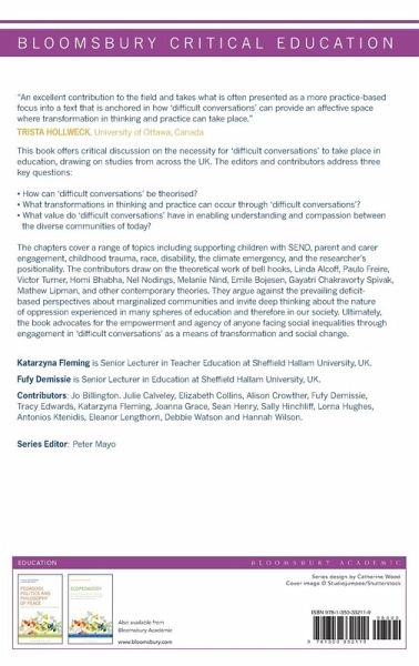 This book offers critical discussion on the necessity for 'difficult conversations' to take place in education, drawing on studies from across the UK. The editors and contributors address three key questions: - How can 'difficult conversations' be theorised? - What transformations in thinking and practice can occur through 'difficult conversations'? - What value do 'difficult conversations' have in enabling peace between the diverse communities of today? The chapters cover a range of topics including supporting children with SEND, parent and carer engagement, childhood trauma, race, disability, the climate emergency and research methods. The contributors draw on the theoretical work of Linda Martin Alcoff, Maurice Blanchot, Paulo Freire, and Maureen Lipman and other contemporary theories. They argue against the prevailing deficit-based perspectives about marginalized communities and students, and invite deep thinking about the nature of oppression and the complicity of many education professionals in it. Ultimately, the book advocates for children's and student's empowerment and agency in the face of social inequalities.