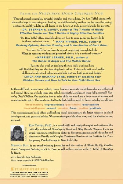 In these difficult, sometimes violent, times, how can we nurture children who are both good and happy? How can we help them stay safe, be respectful, and reach their full potential? Nurturing Good Children Now outlines precisely what is important to foster in our kids, and how to raise children who have a deep sense of values and an enthusiastic spirit. The most essential traits that children need to thrive in today's world are: mood mastery, expressiveness, peer smarts, body comfort, team intelligence, respect, passion, focus, caution, gratitude. This compassionate book offers unflinching social commentary, the latest research on child development, and practical advice. We can protect our children's sense of integrity. We can teach them to love learning; to hold onto their passion; to be comfortable with their bodies; to get along with their peers without succumbing to peer pressure; and to manage their emotions. We can nurture good children now, and, for a better future, we must.