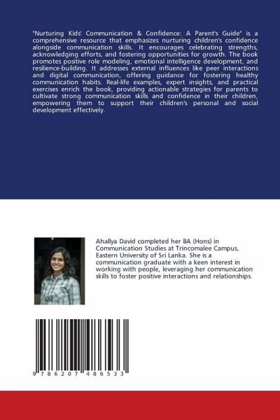 "Nurturing Kids' Communication & Confidence: A Parent's Guide" is a comprehensive resource that emphasizes nurturing children's confidence alongside communication skills. It encourages celebrating strengths, acknowledging efforts, and fostering opportunities for growth. The book promotes positive role modeling, emotional intelligence development, and resilience-building. It addresses external influences like peer interactions and digital communication, offering guidance for fostering healthy communication habits. Real-life examples, expert insights, and practical exercises enrich the book, providing actionable strategies for parents to cultivate strong communication skills and confidence in their children, empowering them to support their children's personal and social development effectively.