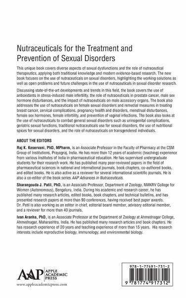 Raj K. Keservani, PhD, MPharm, is Associate Professor in the Faculty of Pharmacy at the CSM Group of Institutions, Prayagraj, India. He has more than 12 years of academic (teaching) experience from various institutes of India in pharmaceutical education. He has supervised undergraduate students for thier research work. He has published many peer-reviewed papers in the field of pharmaceutical sciences in national and international journals, book chapters, coa-uthored books, and edited books. He is also active as a reviewer for several international scientific journals. He is also a co-editor of the book serires AAPAdvances in Nutraceuticals. Sharangouda J. Patil, PhD, is an Associate Professor, Department of Zoology, NMKRV College for Women (Autonomous), Bengaluru, India. During his academic and research career, he has published many research articles, edited books, book chapters and technical bulletins, and has participated and presented research papers at more than 90 conferences, having recieved best paper awards. Dr. Patil is also working as an editor in chief, editorial board member, advisory editorial member, and a reviewer for more than 40 journals. Ivan Aranha, PhD, is an Associate Professor at the Department of Zoology, Ahmednagar College, Ahmednagar, Maharashtra, India. He has published many research articles and book chapters. He has research experience of 20 years and teaching experience of more than 15 years. His research interests include reproductive biology, immunology, and environmental biology.