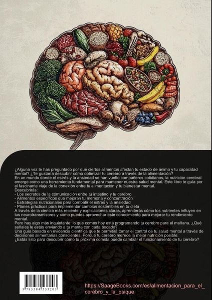 ¿Busca mejorar su bienestar mental y optimizar el funcionamiento de su cerebro a través de la nutrición? Este libro ofrece una guía práctica y científicamente fundamentada sobre medicina nutricional para potenciar la salud mental.Descubra cómo la nutrición cerebral influye directamente en nuestros procesos mentales y aprenda estrategias nutricionales específicas para:- Mejorar la concentración y la memoria- Prevenir el trastorno de estrés mediante la alimentación- Optimizar el rendimiento cerebral- Mantener la salud mental a largo plazo- Implementar una alimentación saludable sostenibleBasado en la medicina nutricional práctica, este libro explora:- La conexión entre los nutrientes y los neurotransmisores- El papel del eje intestino-cerebro en la salud mental- Alimentos específicos para potenciar el bienestar mental- Estrategias antienvejecimiento para el cerebro- Planes prácticos para una nutrición cerebral óptimaAprenderá sobre:- Los fundamentos bioquímicos de la nutrición parala psique- Patrones alimenticios que favorecen la salud mental- Nutrientes esenciales para la optimización cerebral- Cambios prácticos en la alimentación diaria- Prevención de problemas cognitivos mediante la nutriciónEsta guía proporciona herramientas prácticas para implementar un cambio de alimentación efectivo, enfocado en mejorar la salud mental y el funcionamiento cerebral. Incluye planes de comidas, listas de alimentos recomendados y estrategias para mantener estos cambios a largo plazo.Este libro ha sido creado utilizando tecnologías innovadoras como la Inteligencia Artificial y herramientas especialmente desarrolladas, por ejemplo, en la búsqueda de ideas, la investigación, la escritura, la edición, el control de calidad y el diseño de ilustraciones decorativas.De esta manera, queremos ofrecerle una experiencia de lectura especialmente coherente, moderna y de mayor calidad.