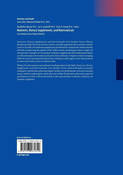 Nutrients, Dietary Supplements, and Nutriceuticals: Cost Analysis Versus Clinical Benefits provides the most current, concise, scientific appraisal and economic analysis (costs vs. benefit) of nutritional supplements and bioactive components (nutriceuticals) of foods in improving the quality of life. It fills a much-needed gap to have a single volume provide a synopsis of cost analysis of dietary supplements and nutritional products as well as therapies for treatment and prevention of disease. Chapters include emerging fields of science and important discoveries relating to early stages of new nutriceuticals in cancer prevention, prior to clinical trials.Written by international and national standing leaders in the field, Nutrients, Dietary Supplements, and Nutriceuticals: Cost Analysis Versus Clinical Benefits is essential reading for nutritionists, pharmacologists, health care professionals, research scientists, cancer workers, pathologists, molecular and cellular biochemists, physicians, general practitioners as well as those interested in diet and nutrition in disease resistance via immune regulation.
