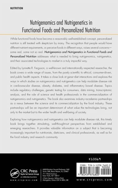 While functional foods have become a reasonably well-established concept, personalized nutrition is still treated with skepticism by many. The recognition that people would have different nutrient requirements, or perceive foods in different ways, raises several concerns-some real, some not so real. Nutrigenomics and Nutrigenetics in Functional Foods and Personalized Nutrition addresses what is needed to bring nutrigenomics, nutrigenetics, and their associated technologies to market in a truly impactful way. Edited by Lynnette R. Ferguson, a well-known and internationally respected researcher, the book covers a wide range of issues, from the purely scientific to ethical, consumer-driven, and public health aspects. It takes a close look at gene-diet interactions and explores the ways in which studies on nutrigenomics and nutrigenetics can help modulate disease risk in cardiovascular disease, obesity, diabetes, and inflammatory bowel disease. Topics include regulatory challenges, genetic testing for consumers, data mining, transcriptomic analysis, and the role of science and health professionals in the commercialization of nutrigenomics and nutrigenetics. The book also examines industry-academia partnerships as a nexus between the science and its commercialization by the food industry. These partnerships will be an important determinant of what value the technologies bring, not only to the market but to the wider health and well-being of society. Exploring how nutrigenomics and nutrigenetics can help modulate disease risk, this timely book brings together stimulating, well-thought-out perspectives from established and emerging researchers. It provides valuable information on a subject that is becoming increasingly important for nutritionists, dieticians, and clinical professionals, as well as for the food industry and research community.