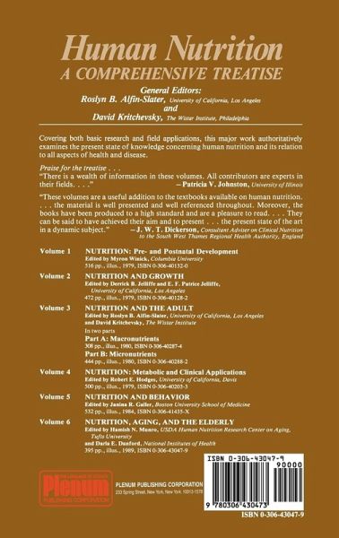 The proportion of the population over 65 years of age is increasing steadily in most industrialized countries. In the United States the proportion of elderly people has risen from four percent in 1900 to 11 % in 1978, and is projected to be 14% by the year 2000. The occurrence of debilitating chronic diseases in the elderly increases with each additional year. These diseases, along with the natural loss of tissue function that occurs throughout adult life, impose a heavy burden on the health care system. Nutri tion plays an important etiologic role in many of these degenerative changes. Conse quently, the aging segment of the population presents a challenge to the nutrition scientist, who should be able to recommend optimal intakes of nutrients to minimize the functional losses associated with aging and to optimize the health of those already elderly. This sixth volume in the series Human Nutrition: A Comprehensive Treatise provides a conspectus of the various interactions of nutrition with the aging process and a comprehensive survey of current knowledge of the amounts of individual nutrients needed by the elderly. The volume begins with a general survey of the multifaceted relationship of nutrition to aging, followed by four chapters on how nutrition can affect age-related changes in selected body functions. The next six chapters cover the avail able evidence regarding the needs of the elderly for dietary energy, protein, calcium, trace elements, vitamins, and fiber.