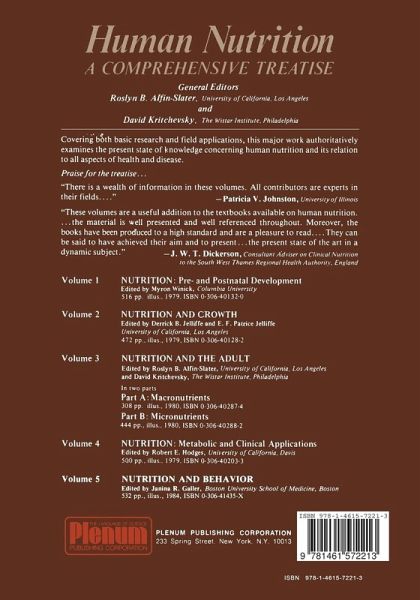After the appearance of the four-book series Human Nutrition: A Compre hensive Treatise, it became apparent to the editors that an important area of nutrition had been overlooked, namely, behavioral aspects of nutrition. There are two areas in which nutrition and behavior interact. On the one hand, mal nutrition may play a major role in determining behavior; alternatively, often aspects of behavior influence the eating habits of populations and individuals and thus affect their nutritional status. Volume 5 of this series speaks eloquently to both features of this important topic. Various aspects of the influence of behavior modification and nutrition have been explored by a number of qualified investigators. It is hoped that this volume will prove a valuable addition to the subjects covered in the other volumes. Roslyn B. Alfin-Slater David Kritchevsky Los Angeles and Philadelphia ix Contents Introduction: The Challenge of Nutrition and Environment as Determinants of Behavioral Development .................... . Janina R. Galler References ............................................. 5 Part I - Nutritional Deficiencies or Excesses Modifying Behavioral Outcome Chapter 1 Methological Requirements for Conceptually Valid Research Studies on the Behavioral Effects of Malnutrition David E. Barrett 1. Introduction ......................................... 9 2. Statistical-Conclusion Validity. . . . . . . . . . . . . . . . . . . . . 11 . . . . . . . 3. Internal Validity ...................................... 14 4. External Validity ..................................... 16 5. Construct Validity of Putative Causes and Effects . . . . . . . . .. . . . 19 6. Conclusions and Recommendations . . . . . . . . . . . . . . . .. . . . 28 . . . .