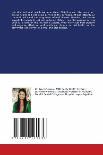 Nutrition and oral health are interrelated. Nutrition and diet can affect overall health and well-being as well as the development and integrity of the oral cavity and the progression of oral diseases. Likewise, oral disease impacts the ability to eat and nutrition status. Thus, the purpose of this book is to focus on the nutritional aspects, which may cause both positive and negative effects on oral health and its role on oral health for the prevention and control of dental and oral diseases.