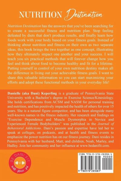 Nutrition Destination has the answers that you've been searching for to make a successful fitness and nutrition plan. Stop feeling defeated by diets that don't provide results, and finally learn how foods work with your body based on your fitness goals. Instead of thinking about nutrition and fitness on their own as two separate ideas, this book brings the two together as one concept, illustrating how they ultimately impact one another and your success. I will teach you six practical methods that will forever change how you feel and think about food to become healthy and fit for a lifetime. Putting yourself in control of your own nutrition destiny makes all the difference in living out your achievable fitness goals. I want to share this valuable information so you can start maximizing your efforts and adopt these functional methods in your everyday life!