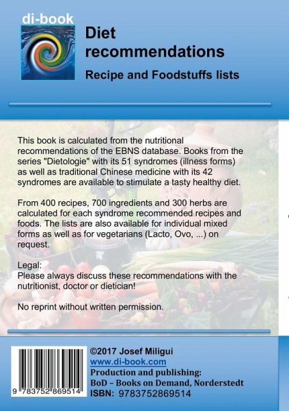 di-book - nutritional counseling after syndromes - Diet recommendations, recipes and food supplements for supporting the school medicine therapy. The recipes help you to cook tasty dishes. All recipes with cooking instructions, calorie indications and description of the effect. The foods are shown in categories recommended, yes, little and no and help you to orientate if your own recipes should be cooked.