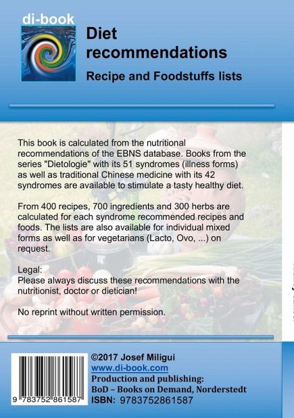 i-book - nutritional counseling after syndromes - Diet recommendations, recipes and food supplements for supporting the school medicine therapy. The recipes help you to cook tasty dishes. All recipes with cooking instructions, calorie indications and description of the effect. The foods are shown in categories Recommended, Yes, Less and No, and help orientate if your own recipes should be cooked.