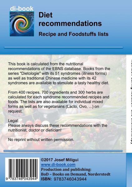 di-book - nutritional counseling after syndromes - Diet recommendations, recipes and food supplements for supporting the school medicine therapy. The recipes help you to cook tasty dishes. All recipes with cooking instructions, calorie indications and description of the effect. The foods are shown in categories recommended, yes, little and no and help you to orientate if your own recipes should be cooked.