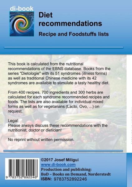 Di-book - nutritional counseling after syndromes - Diet recommendations, recipes and food supplements for supporting the school medicine therapy. The recipes help you to cook tasty dishes. All recipes with cooking instructions, calorie indications and description of the effect. The foods are shown in categories recommended, yes, little and no and help you to orientate if your own recipes should be cooked.