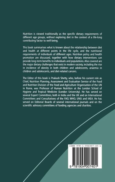 Nutrition is viewed traditionally as the specific dietary requirements of different age groups, without exploring diet in the context of a life-long contributory factor to well-being. "Nutrition Through the Life Cycle" summarizes what is known about the relationship between diet and health at different points in the life cycle, and the nutritional requirements of individuals of different ages. Nutrition policy and health promotion are discussed, together with how dietary interventions can provide long-term benefits to individuals and populations. Also covered are the major dietary challenges that exist in modern society, including the rise in incidence of obesity in both children and adolescents, anaemia in children and adolescents, and diet-related cancers. This book is published in association with Leatherhead Food RA.