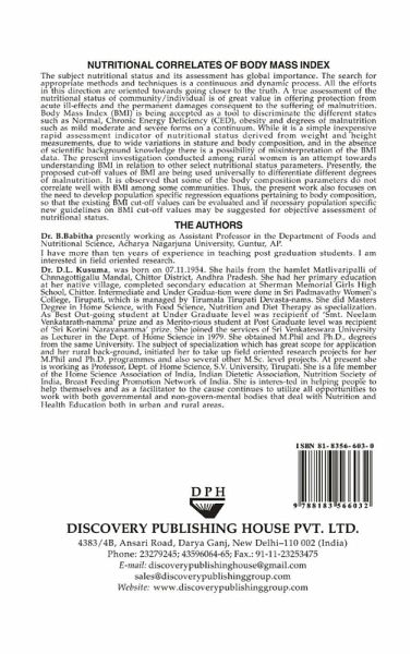 The subject nutritional status and its assessment has global importance. The search for appropriate methods and techniques is a continuous and dynamic process. All the efforts in this direction are oriented towards going closer to the truth. A true assessment of the nutritional status of community/individual is of great value in offering protection from acute ill-effects and the permanent damages consequent to the suffering of malnutrition. Body Mass Index (BMI) is being accepted as a tool to discriminate the different states such as Normal, Chronic Energy Deficiency (CED), obesity and degrees of malnutrition such as mild moderate and severe forms on a continuum. While it is a simple inexpensive rapid assessment indicator of nutritional status derived from weight and height measurements, due to wide variations in stature and body composition, and in the absence of scientific background knowledge there is a possibility of misinterpretation of the BMI data. The present investigation conducted among rural women is an attempt towards understanding BMI in relation to other select nutritional status parameters. Presently, the proposed cut-off values of BMI are being used universally to differentiate different degrees of malnutrition. I