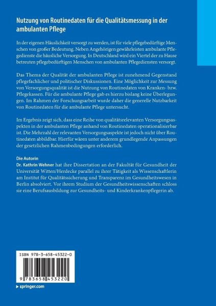 Das Thema der Qualität der ambulanten Pflege ist zunehmend Gegenstand pflegefachlicher und politischer Diskussionen. Eine Möglichkeit zur Messung von Versorgungsqualität ist die Nutzung von Routinedaten von Kranken- bzw. Pflegekassen. Für die ambulante Pflege gab es hierzu bislang keine Überlegungen. Im Rahmen der Forschungsarbeit wurde daher die generelle Nutzbarkeit von Routinedaten für die ambulante Pflege untersucht.