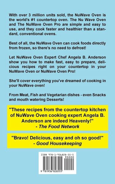 With over 3 million units sold, the NuWave Oven is the world's #1 countertop oven. The Nu Wave Oven and The NuWave Oven Pro are simple and easy to use, and they cook faster and healthier than a standard, conventional ovens. Best of all, the NuWave Oven can cook foods directly from frozen, so there's no need to defrost. Let NuWave Oven Expert Chef Angela B. Anderson show you how to make fast, easy to prepare, delicious recipes right on your countertop in your NuWave Oven or NuWave Oven Pro. She'll cover everything you've dreamed of cooking in your NuWave oven! From Meat, Fish and Vegetarian dishes - even Snacks and mouth watering Desserts! "These recipes from the countertop kitchen of NuWave Oven cooking expert Angela B. Anderson are indeed Heavenly!" - The Food Network "Bravo! Delicious, easy and oh so good!" - Good Housekeeping