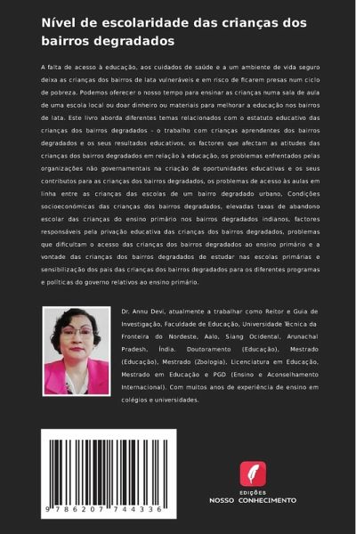 A falta de acesso à educação, aos cuidados de saúde e a um ambiente de vida seguro deixa as crianças dos bairros de lata vulneráveis e em risco de ficarem presas num ciclo de pobreza. Podemos oferecer o nosso tempo para ensinar as crianças numa sala de aula de uma escola local ou doar dinheiro ou materiais para melhorar a educação nos bairros de lata. Este livro aborda diferentes temas relacionados com o estatuto educativo das crianças dos bairros degradados - o trabalho com crianças aprendentes dos bairros degradados e os seus resultados educativos, os factores que afectam as atitudes das crianças dos bairros degradados em relação à educação, os problemas enfrentados pelas organizações não governamentais na criação de oportunidades educativas e os seus contributos para as crianças dos bairros degradados, os problemas de acesso às aulas em linha entre as crianças das escolas de um bairro degradado urbano, Condições socioeconómicas das crianças dos bairros degradados, elevadas taxas de abandono escolar das crianças do ensino primário nos bairros degradados indianos, factores responsáveis pela privação educativa das crianças dos bairros degradados, problemas que dificultam o acesso das crianças dos bairros degradados ao ensino primário e a vontade das crianças dos bairros degradados de estudar nas escolas primárias e sensibilização dos pais das crianças dos bairros degradados para os diferentes programas e políticas do governo relativos ao ensino primário.
