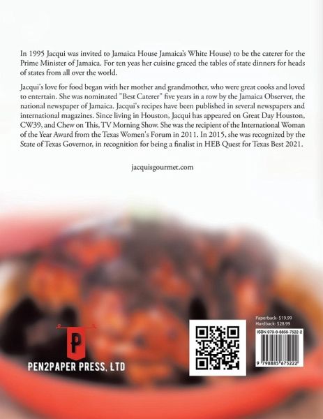In 1995 Jacqui was invited to Jamaica House (Jamaica's White House) to be the caterer for the Prime Minister of Jamaica. For ten yeas her cuisine graced the tables of state dinners for heads of states from all over the world. Jacqui's love for food began with her mother and grandmother, who were great cooks and loved to entertain. She was nominated "Best Caterer" five years in a row by the Jamaica Observer, the national newspaper of Jamaica. Jacqui's recipes have been published in several newspapers and international magazines. Since living in Houston, Jacqui has appeared on Great Day Houston, CW39, and Chew on This, TV Morning Show. She was the recipient of the International Woman of the Year Award from the Texas Women's Forum in 2011. In 2015, she was recognized by the State of Texas Governor, in recognition for being a finalist in HEB Quest for Texas Best 2021.
