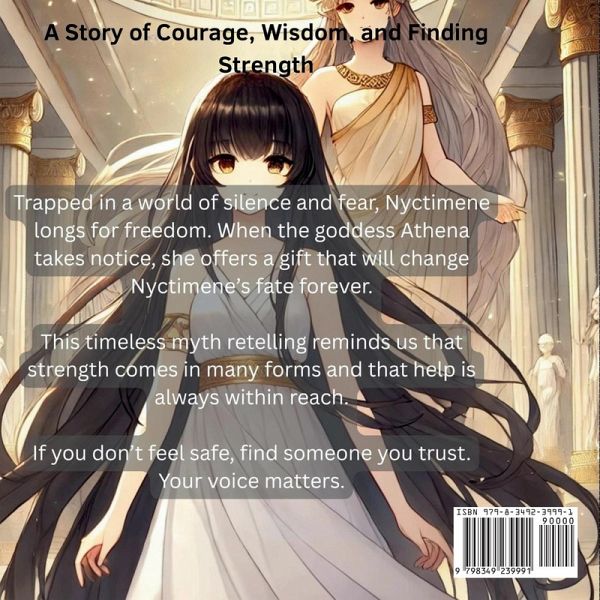 Nyctimene: The Owl of Athena is a poetic and visually rich children's book inspired by one of Greek mythology's lesser-known tales. With lyrical prose and gentle pacing, this story invites young readers into a world of ancient magic, self-discovery, and the quiet strength found in transformation. Beautifully illustrated and thoughtfully written, this timeless tale offers a fresh perspective on the origins of Athena's owl while exploring themes of courage, wisdom, and the journey to find one's voice. A captivating read for families, classrooms, and mythology lovers alike.