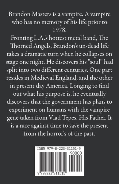 Brandon Masters is a vampire. A vampire who has no memory of his life prior to 1978. Fronting L.A.'s hottest metal band, The Thorned Angels, Brandon's un-dead life takes a dramatic turn when he collapses on stage one night. He discovers his ''soul'' had split into two different centuries. One part resides in Medieval England, and the other in present day America. Longing to find out what his purpose is, he eventually discovers that the government has plans to experiment on humans with the vampire gene taken from Vlad Tepes. His Father. It is a race against time to save the present from the horrors of the past.