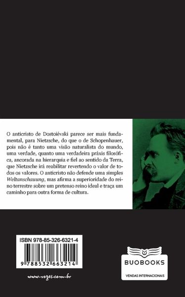 O anticristo, de Nietzsche, discorre sobre a natureza da religião cristã e sobre a concepção de mundo e do homem dela decorrente. A aparente crítica de Nietzsche contra o cristianismo é, na verdade, uma crítica à ¿maldição original¿ editada pelo cristianismo. É uma ¿negação da negaçãö do homem; portanto, uma afirmação daquilo que o cristianismo historicamente negou. O anticristo de Dostoiévski parece ser mais fundamental, para Nietzsche, do que o de Schopenhauer, pois não é tanto uma visão naturalista do mundo, uma verdade, quanto uma verdadeira práxis filosófica, ancorada na hierarquia e fiel ao sentido da Terra, que Nietzsche irá reabilitar revertendo o valor de todos os valores. O anticristo não defende uma simples Weltanschauung, mas afirma a superioridade do reino terrestre sobre um pretenso reino ideal e traça um caminho para outra forma de cultura.