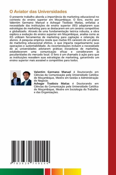 O presente trabalho aborda a importância do marketing educacional no contexto do ensino superior em Moçambique. O livro, escrito por Valentim Germano Manuel e Achegar Tiodósio Matias, enfatiza a necessidade das instituições de ensino superior (IES) adaptarem suas estratégias de marketing para se destacarem em um cenário competitivo e globalizado. Através de uma fundamentação teórica robusta, a obra explora a evolução do ensino superior em Moçambique, analisa como as IES utilizam ferramentas de marketing para captação e retenção de alunos. A pesquisa empírica revela que muitas IES carecem de um plano de marketing educacional efetivo, o que impacta negativamente suas operações e sustentabilidade. As recomendações incluem a necessidade de as universidades adotarem práticas inovadoras de marketing, estabelecerem uma comunicação eficaz e considerarem as peculiaridades do mercado local. O livro é um chamado à ação para que as instituições reavaliem suas estratégias de marketing, garantindo um ensino superior mais acessível e competitivo para todos.